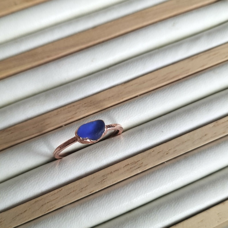 A beautiful piece of seaglass encased in copper makes this ring a real statement piece!We collect our seaglass whilst beach cleaning and sea swimming and hand make our jewellery at home by the sea. It's a slow craft and made in small batch. No two pieces a