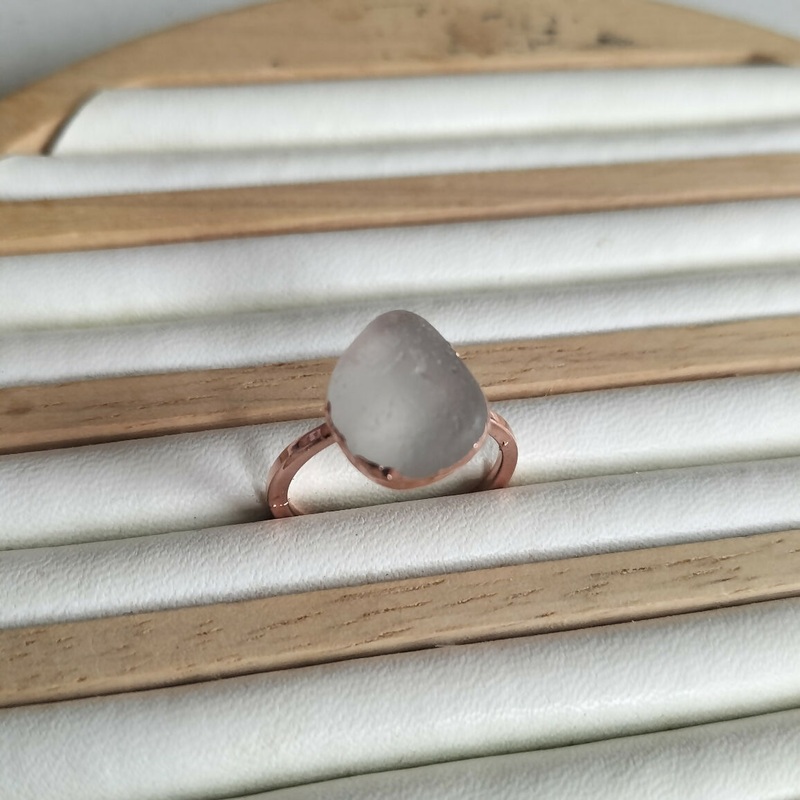 A beautiful piece of seaglass encased in copper makes this ring a real statement piece!We collect our seaglass whilst beach cleaning and sea swimming and hand make our jewellery at home by the sea. It's a slow craft and made in small batch. No two pieces a